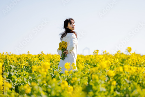 © Akemi, Naklejka premium 菜の花畑と女性