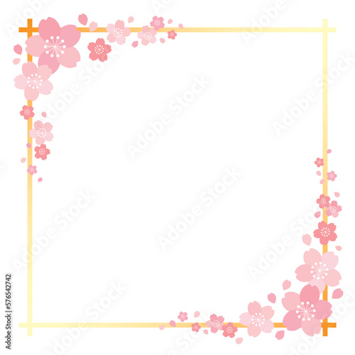 © 中居さちこ, Obraz premium 桜の花とグラデーションラインの四角フレーム 背景 バナー/正方形・オレンジ