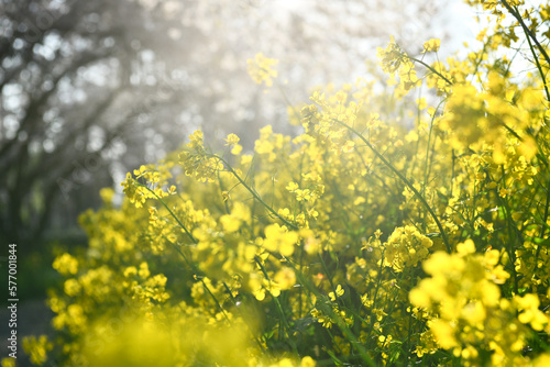 Obraz premium 木漏れ日あふれる菜の花畑