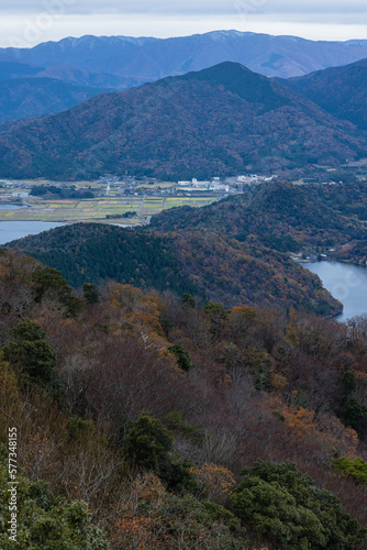 Obraz premium 日本 福井県三方上中郡若狭町の三方五湖レインボーライン山頂公園の若狭テラスから見える三方五湖