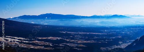 © RITSU MIYAMOTO, Fototapeta premium 冬 入笠山から 奥秩父山地 金峰山から茅ヶ岳への山並みを望む