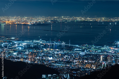 Obraz premium 日本 兵庫県神戸市の六甲山天覧台から眺める神戸市街地の夜景