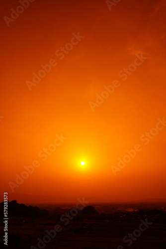 © PAE, Fototapeta premium 春霞む奈良盆地落日の時