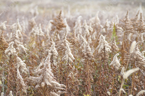 © K-Morin, Fototapeta premium 枯れたセイタカアワダチソウ 冬 1月