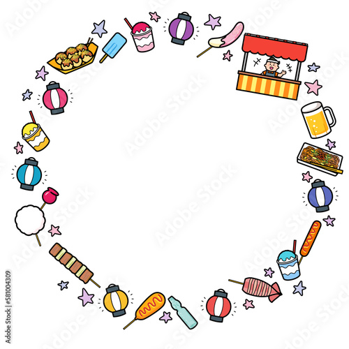 Obraz premium イラストフレーム 夏祭り・縁日