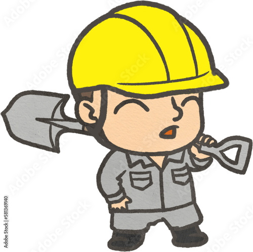 Obraz premium スコップを持つ工事現場の人のイラスト