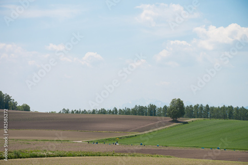 © kinpouge, Obraz premium 春の畑作地帯と青空