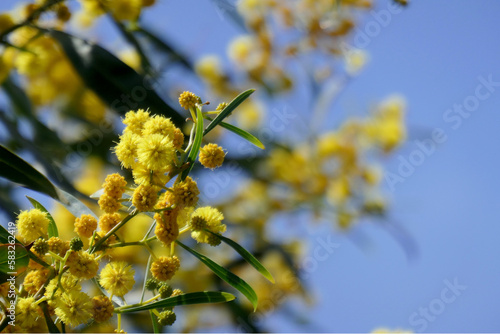 © YoWorks, Fototapeta premium 青い空を背景にした満開のミモザ