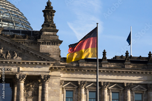 © malush, Obraz premium флаг с правительственным зданием