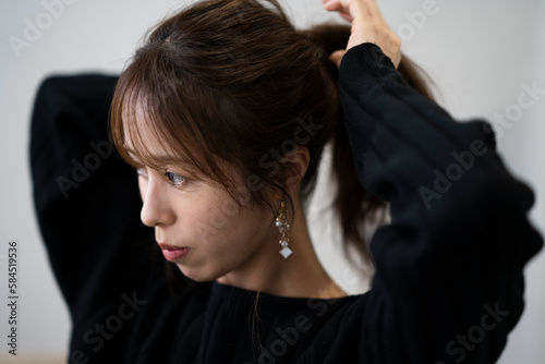 Fototapeta premium ヘアメイクをする女性