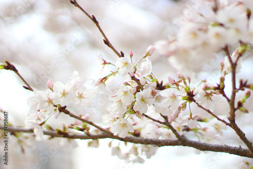 © yoshie, Fototapeta premium ふんわりとした桜の写真 シンプル 枝付 晴れ 日本 儚い