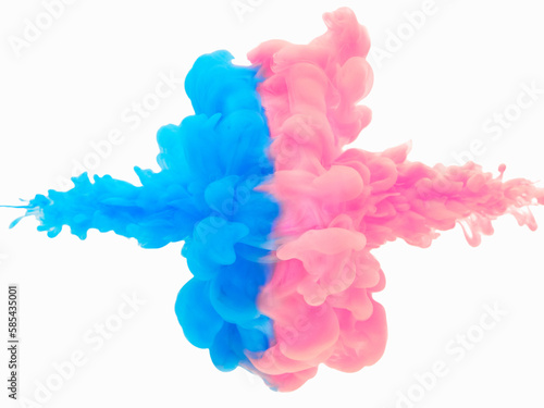 © Kenkichi, Obraz premium 水中で衝突する絵の具 , 青とピンク2 , 白背景