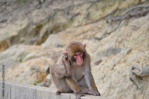Naklejka premium 日本の淡路島に住んでいる野生猿、猿、日本猿。 人間にも近づくことがあります、人間から逃げない