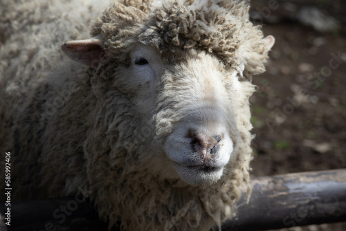Fototapeta premium 柵から顔を出す羊