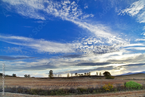 © itoh masako, Obraz premium 夕暮れ時の雲と並木(美瑛町)