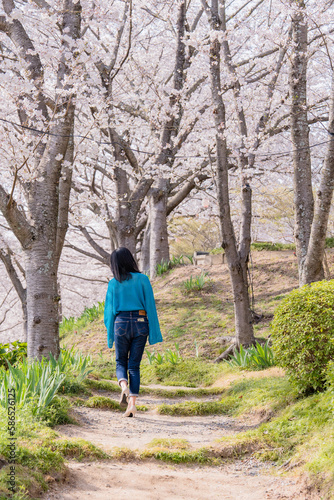 © NAMBA, Fototapeta premium お花見で散歩する女性6