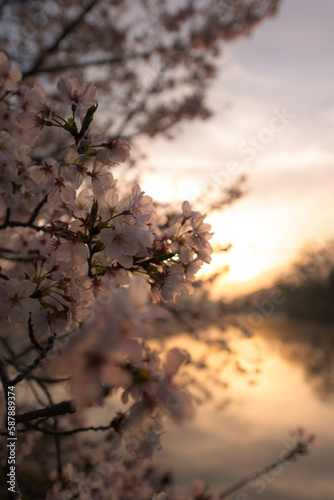 Obraz premium 朝日と桜