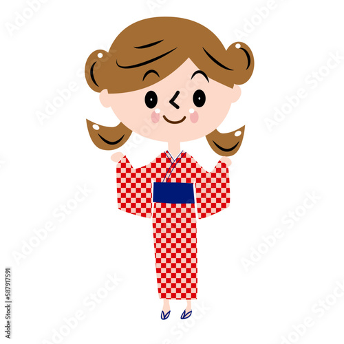 © 哲夫 荒, Obraz premium 浴衣を着た女の子のイラスト