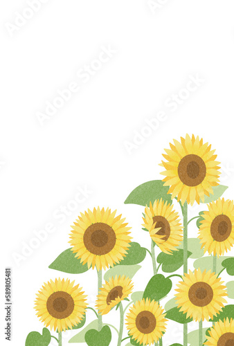Obraz premium 淡い色彩のひまわり畑の縦フレーム