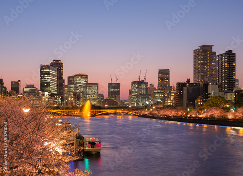 Fototapeta premium 大川沿いに並ぶ桜の風景