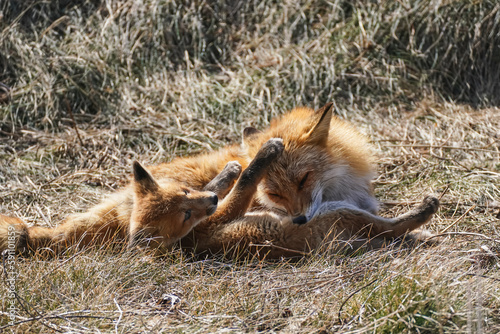 © 周平 小金澤, Fototapeta premium キタキツネの親子