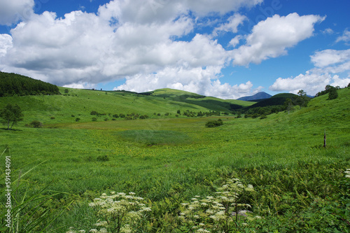 Naklejka premium 盛夏の霧ヶ峰・池のくるみ