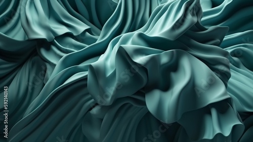 Obraz premium 물결같은 청록색 섬유, 천 재질의 모양. 인공지능 생성