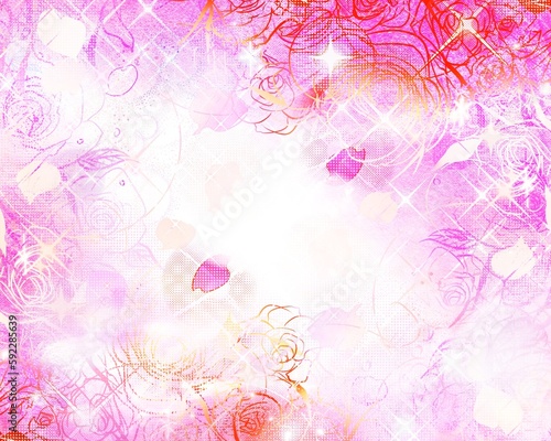 Obraz premium 70年代風少女漫画キラキラ薔薇の花園背景ペン画イラスト