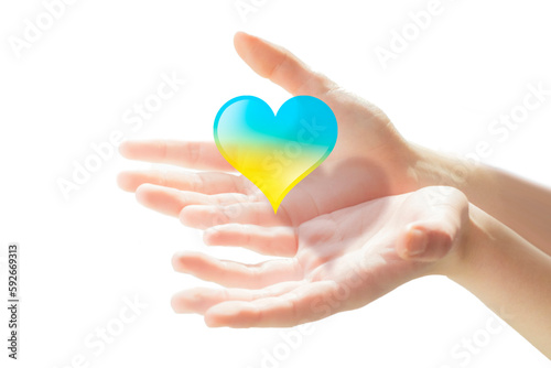 © Nii Koo Nyan, Obraz premium ウクライナ国旗色のハートと手