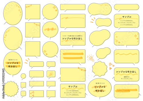 Obraz premium 様々な形の吹き出しセット04(黄色)