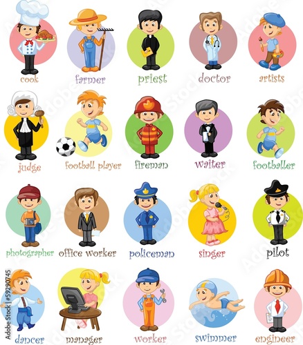 © virinaflora, Naklejka premium Герои мультфильмов разных профессий