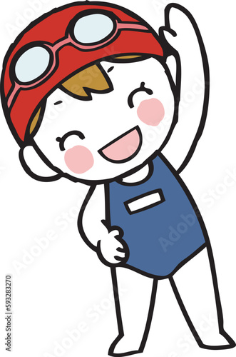 Obraz premium 水着で準備体操をする女の子のイラスト