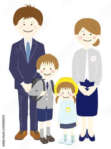 Obraz premium 幼稚園の入園式と小学校の入学式の家族
