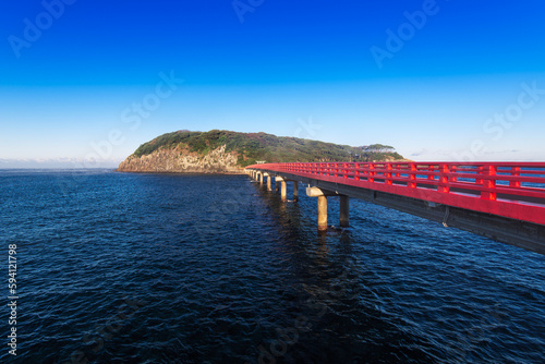 Obraz premium 大湊神社に渡る赤い橋と雄島