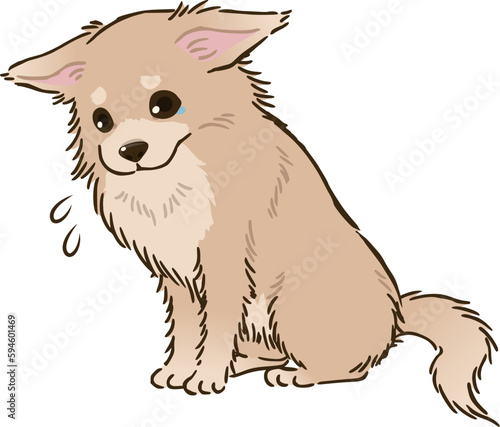 © ひかわ, Obraz premium 悲しむチワワ(ロングコート、クリーム)
