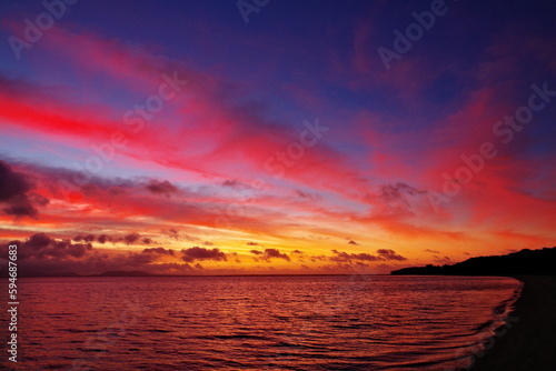 Obraz premium 沖縄県小浜島 トゥマールビーチの美しい朝焼け