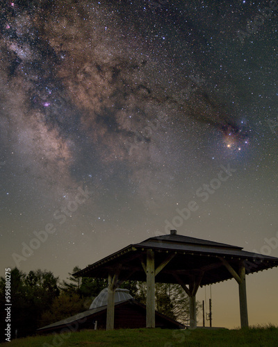 Fototapeta premium 福島県東白川郡 鹿角平天文台の東屋と天の川