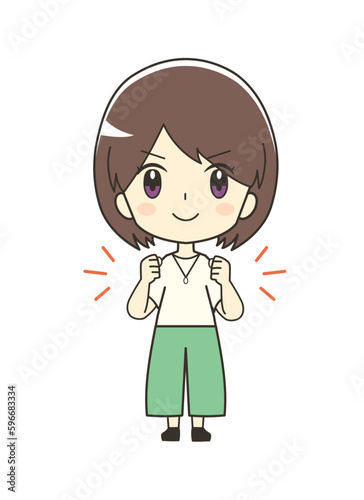 Obraz premium 気合を入れる女性のイラスト