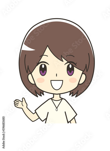 © 千茶, Obraz premium 紹介する女性のイラスト