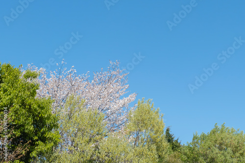 Obraz premium 晴れ渡る春の日 青空と新緑の木々
