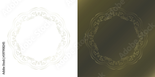 Fototapeta premium 素材_フレームのセット_イルカをモチーフにした金色の飾り枠。高級感のある夏のイメージ。字無