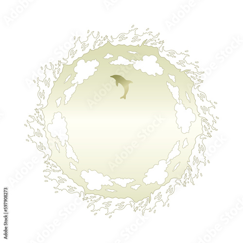 Obraz premium 素材_フレーム_イルカをモチーフにした金色の飾り枠。高級感のある夏のイメージ。字無