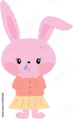 Obraz premium 鼻水が出て困っているうさぎの女の子イラスト