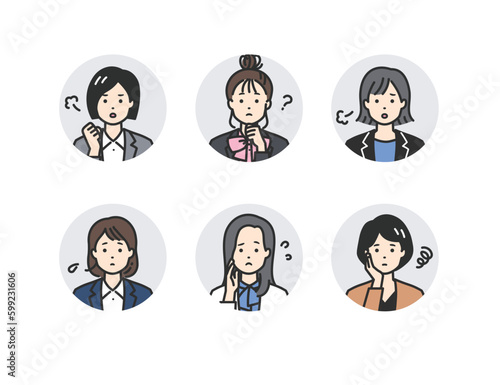 © Connoi, Naklejka premium ネガティブな表情のスーツの女性 - ストレスや悩みを抱えるビジネスウーマンのベクターイラスト