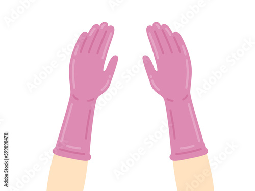 Obraz premium キッチン用の、ピンク色のゴム手袋のイラスト