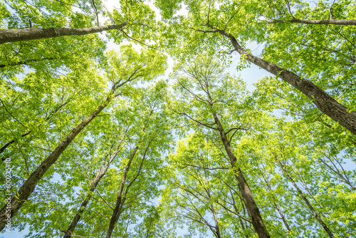 Obraz premium 下から見上げた新緑のクヌギ林