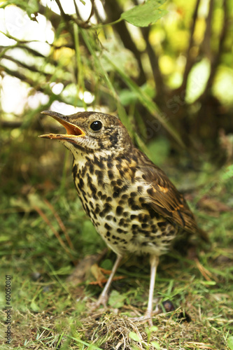 Fototapeta premium Дрозд летом под кустом.