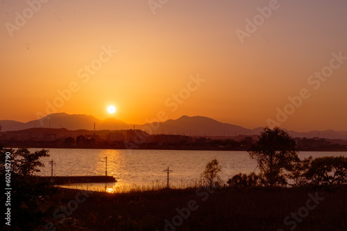 © mk1gan, Fototapeta premium 揖斐長良川河口の夕景