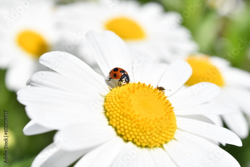 Fototapeta premium てんとう虫とマーガレットの花
