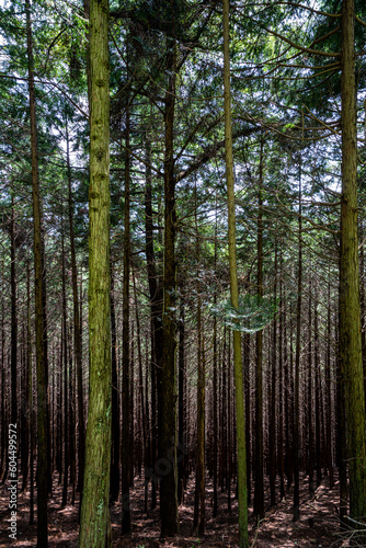 © KOMAKI JUN, Fototapeta premium 天空の茶畑展望台に行く途中の針葉樹林帯